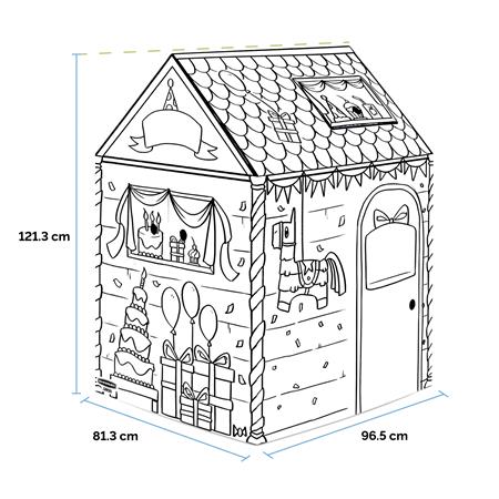 Az XL méretű játszóház ösztönzi a célirányos szerepjátékot, a nyelvi fejlődést és a mesemondást, miközben a gyerekek kifestik, díszítik és személyre szabják a saját terüket.