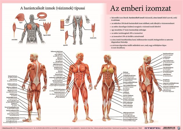 Az emberi vázizomzat két oldalas alátétünk rendhagyó módon mutatja be az ember izomzatát. A hasonló jellegű termékek általában ugyanazt a szemből látható, „kiterített” emberalakot ábrázolják. A Stiefel könyöklője ezzel szemben megmutatja a női test felépítését is, s így láthatóvá válnak a női és a férfi testfelépítés különbségei, ami érdekessé teszi a terméket, és ami ennél fontosabb, magát a témát is, a biológiaórán az emberi testtel foglalkozó felső tagozatos diákok számára. Mivel az alátéten négy emberi test állt rendelkezésre, az izmok bemutatásának több hely jutott, az oktatóábrák így „szellősek”, jól áttekinthetők lettek. Az alátét másik oldala, az Érzékszervek eredeti, körvonalaiban, színeiben jól tagolt ábrákon mutatja be az emberi érzékelés öt szervét. A könyöklő mindkét oldalán fontos tudományos tények, érdekességek is helyet kaptak. A termék pontosságát orvos szakértő vizsgálta, így az nemcsak hiteles oktatási segédeszköz, de az orvosi rendelők íróasztalain és a masszőrszoba falain is hasznos díszítőelem lehet.