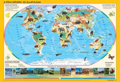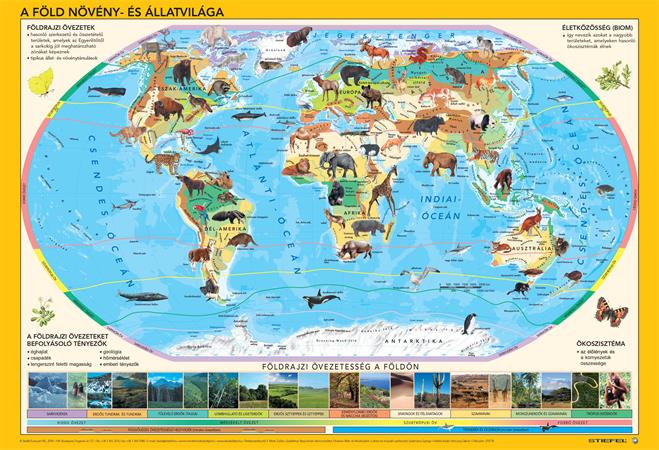 „A Föld állat- és növényvilága című könyöklő élethű, művészi pontossággal készült, egyedi rajzokkal mutatja be földünk állatvilágát, ügyesen egyensúlyozva a jól ismert fajok és a különlegességek felvonultatása között. Az állatrajzokat egy hiteles, jól használható világtérképen helyeztük el, amely egyszersmind bemutatja Földünk „övezetességeit” is – a tundrákat, tajgákat, sivatagokat és a többit –, azaz az éghajlati sajátosságok alapján kialakult növénytakarót, és az ezekből következő sajátos ökoszisztémát. Így könyöklőt nézegetve, akár gyermek, akár felnőtt felhasználóról is legyen szó, a biológia- vagy földrajzórán elhangzó, elsőre homályosnak tűnő fogalmak is egyből világossá válnak. A termék alján látható, élőhelyenkénti jellegzetes kis fényképek szintén a jobb megértést szolgálják. A könyöklő hátoldalán, a még jobb tisztánlátás végett, világtérkép nélkül, nagyobb méretben, az égövek szerint sorba rakva láthatjuk az előoldalon szerepeltetett állatrajzokat.”