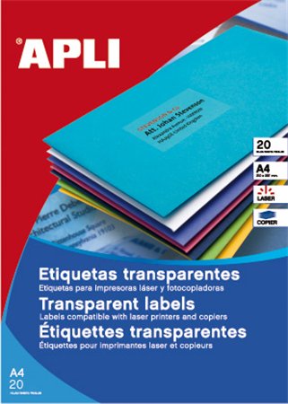 Etikett, 210x297 mm, poliészter, időjárásálló, matt, APLI, áttetsző, 20 etikett/csomag