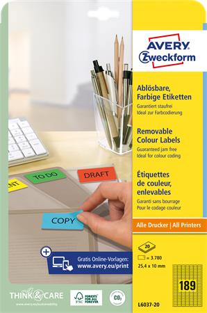 Etikett, univerzális, 25,4x10 mm, eltávolítható, kerekített sarkú, AVERY ZWECKFORM, 3780 etikett/csomag, sárga