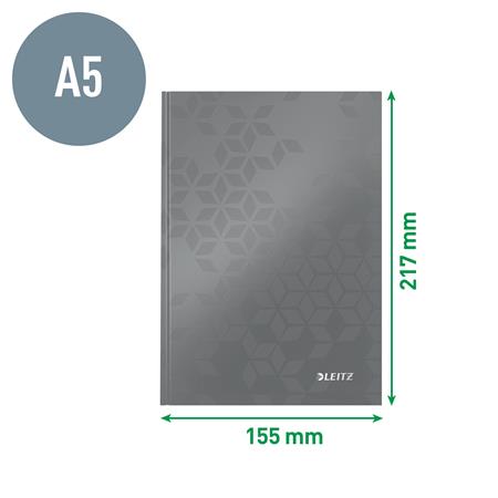Beíró, A5, vonalas, 80 lap, keményfedeles, LEITZ "Wow", jégkék