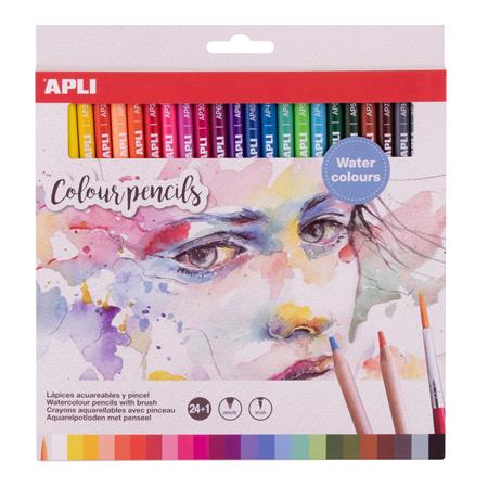 Akvarell színes ceruza készlet, háromszögletű, ecsettel, APLI, 24 különböző szín