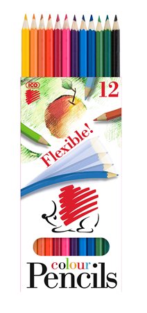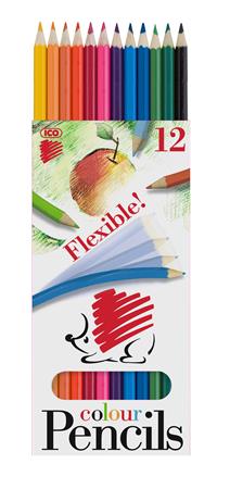 Színes ceruza készlet, hatszögletű, hajlékony, ICO "Süni", 12 különböző szín