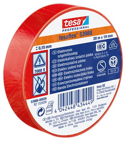 Szigetelőszalag, 19 mm x 20 m, TESA "Professional", piros